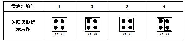 控制器的每塊回路板最多可以接4個(gè)直接控制盤,每塊直接控制盤有自身的盤地址,由6路燈鍵板上X7和X8編號(hào)設(shè)置插針來設(shè)置,從1號(hào)開始,依次編碼設(shè)置如表7-1。