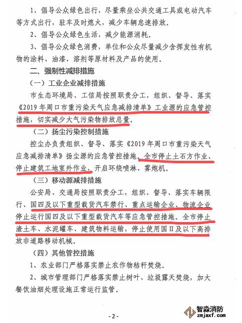 按照“一廠一策”:完成超低排放的燃煤機組嚴格執行超低排放限值;水泥生產線、水泥粉磨站、水泥制品行業(混凝土攪拌站、預制品、水泥砌塊等)、磚瓦企業等行業嚴格執行棗莊市秋冬季大氣污染綜合治理相關文件要求和市工業和信息化、生態環境部門制定的錯峰生產方案,非錯峰生產期間采取限產、停產措施;未完成超低排放的燃煤機組和燃煤鍋爐、承擔保民生任務的水泥生產線、鋼鐵、焦化、平板玻璃、橡膠、工業窯爐、化工、工業涂裝等行業大氣污染物排放單位采取限產、限排措施;礦山停止露天作業,砂石加工停止作業;施工工地應停止土石方作業、建筑拆除、噴涂粉刷、護坡噴漿、混凝土攪拌等(塔吊和地下施工等不宜采取停工措施的除外);城市主干道和易產生揚塵路段每日增加 2 次清掃保潔作業;施工工地、工業企業廠區和工業園區內應停止使用國二及以下非道路移動機械(清潔能源和緊急檢修作業機械除外);礦山(含煤礦)、洗煤廠、物流(除民生保障類)等涉及大宗原料和產品運輸(日常車輛進出量超過10輛次)的單位及貨物運輸車輛所有人或經營人應停止使用國四及以下重型載貨汽車(含燃氣)進行運輸(特種車輛、?;奋囕v等除外);未安裝密閉裝置易產生遺撒的煤炭、渣土、砂石料等運輸車輛停止上路。具體減排措施按照最新的《棗莊市重污染天氣應急減排清單(2019—2020)》(棗氣綜指〔2019〕63號)中規定的措施執行。