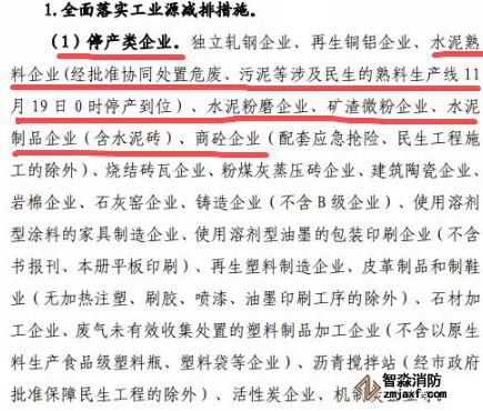 工業企業必須嚴格落實新修訂的應急減排措施清單中停限產措施,建材行業全部停產(包括水泥行業、采石采砂行業等),涉保障民生供熱任務的工業企業嚴格執行以熱定產、以氣定產;供應重點工程物流的工業企業嚴格按照《關于重污染天氣允許重點工程項目施工建設的復函》執行以量定產要求。