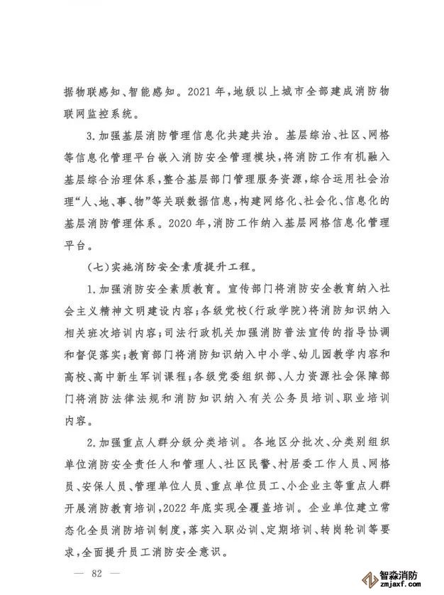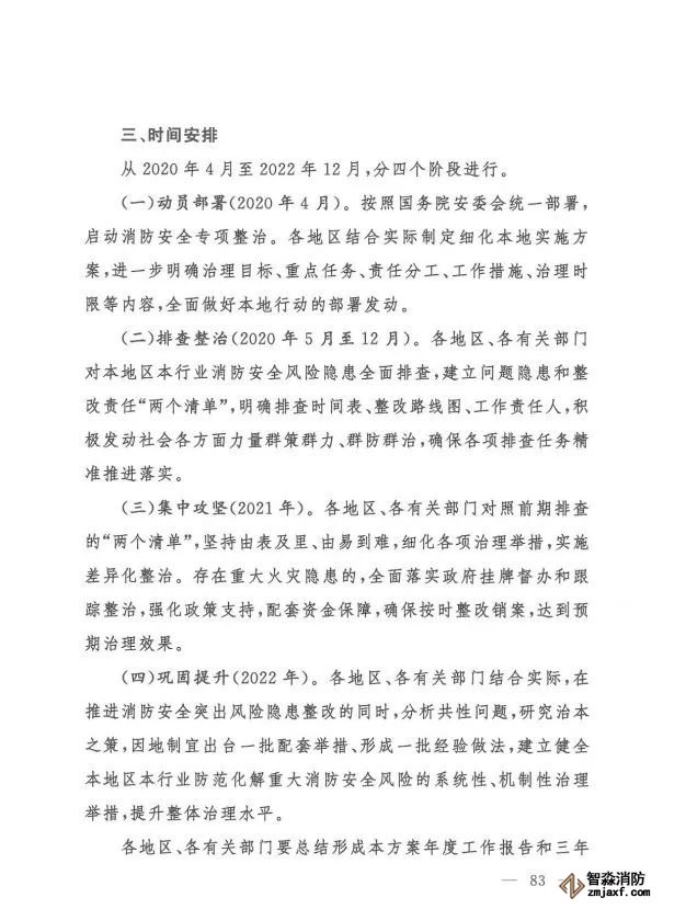 根據(jù)實施方案,其中高層建筑將全面排查測試高層建筑室內(nèi)清火檢系統(tǒng)和自動噴水滅火系統(tǒng),建立維護保養(yǎng)制度,逐棟解決消火檢無水以及消防供水不足、壓力不夠等問題;管理使用單位全面自查商層建筑外保溫防護層破損開裂、脫落以及電纜井、管道井防火封堵不嚴等問題;每棟高層公共建筑和每個高層住宅小區(qū)依托社區(qū)網(wǎng)格員、保安人員、管理使用單位人員、志愿者等力量,建立一支徽型消防站隊伍。