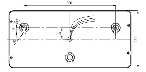 噴灑燈安裝方式采用壁掛方式。先安裝兩只M6×60膨脹螺栓,安裝孔距為260mm(見圖5-15),再將噴灑燈接好線,調節好膨脹螺栓的高度,將噴灑燈緊掛在墻上。也可將外殼上蓋打開,把膨脹螺栓的螺母擰緊。