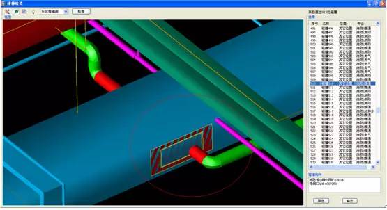 根據建筑、結構、機電的BIM模型進行管線的布置,在發生與總包BIM模型發生沖突或者碰撞時,相互協調碰撞,利用BIM軟件把建筑、結構等影響到機電專業的模型,整合到一個模型當中,利用軟件自動檢測碰撞功能,分別檢測機電各專業間碰撞、機電與建筑和結構碰撞等,把問題提前優化,把影響較大的問題反饋給相關專業協調修改。