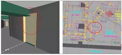 利用BIM模型檢測出的結構梁與門的碰撞,在傳統的2D平面圖紙里很難發現此類問題。